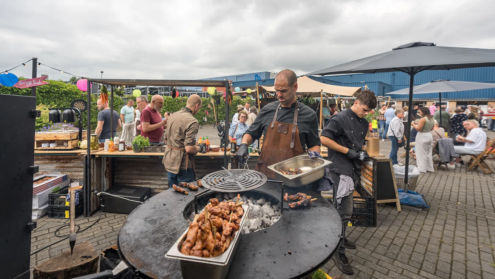 Het terrein was omgetoverd tot feestlocatie met foodtrucks, een kidsbuffet en volop vermaak. Van schminken tot een uitdaging op de Surfrodeo. Dankzij sponsoring van Profine/Kömmerling waren de interactieve robots Unitree G1 en Robot Hond GO2 van Smartrobotsolutions aanwezig, die jong én oud wisten te verbazen.