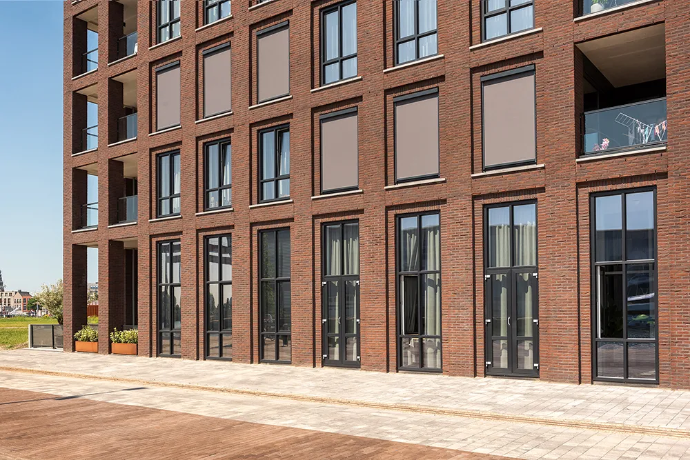 Kumij heeft 25 appartementen voorzien van duurzame kozijnen. Het gebouw, een robuust gemetseld blok dat perfect uitlijnt met de naastgelegen Timmerfabriek, is een moderne knipoog naar industriële architectuur. De dynamiek van deze unieke locatie komt volledig tot leven door de toepassing van veel glas, waardoor de bewoners optimaal kunnen genieten van hun omgeving.