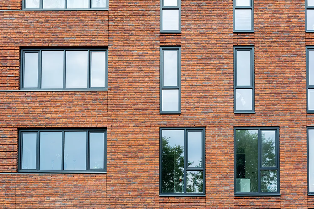 Voor de kozijnen en draaidelen is gekozen voor Trend RV, een systeem dat garant staat voor een strakke en eigentijdse uitstraling. De afwerking in RAL7021 (Zwartgrijs) geeft de gevels een stoere, stijlvolle en tijdloze look.